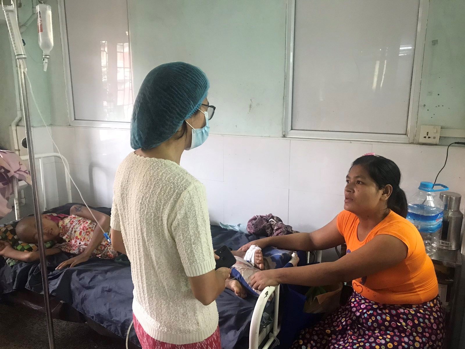 The big sister (caregiver) of the girl (patient) heartfeltly expressed thanks saying “Before a strong wind (cyclone) hit, we were able to carefully manage our living with our low income. The strong win had made a huge loss for us. It destroyed our house and our paddy field. We lost our hope and foreseen income, and we have to repair our house which is the double burden for us. My sister became weak and found out that she is unable to walk all of a sudden. It is fortunate that the project’s support compensates our travel cost which allow us to spend on other medication costs including but not limited to buying syringe, drip set, some medicines, etc.”.